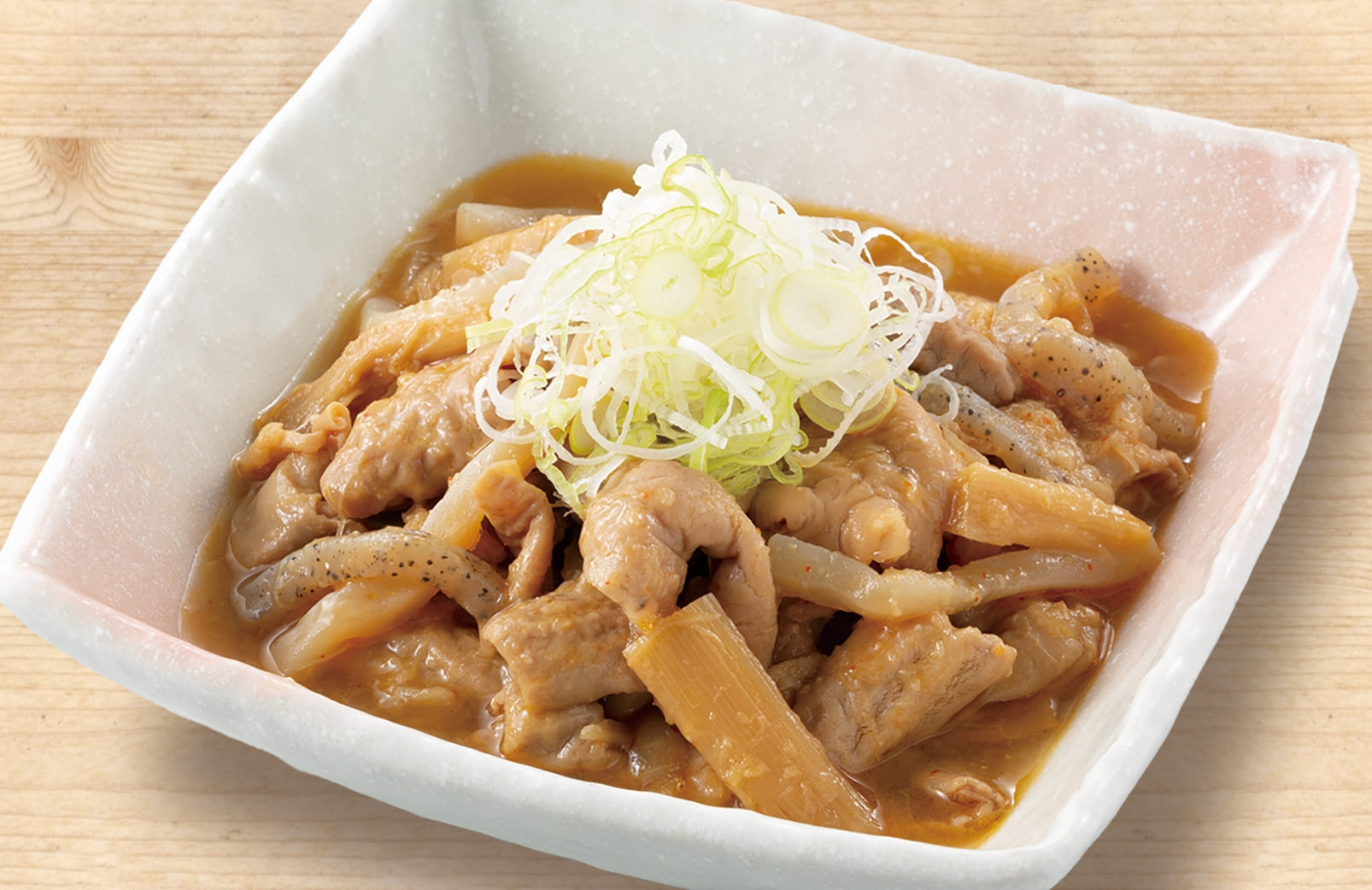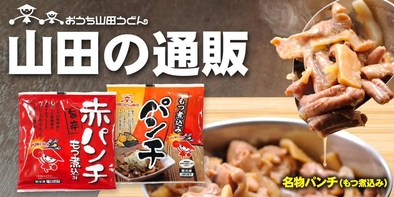 昭和50年代から販売している「もつ煮込み」で、特別な名前で販売しようとしましたが、いい名前が浮かばず、当時の役員が「どれもこれもパンチのない名前だなぁ・・・」と言ったことがきっかけで「パンチ」という名前になりました。醤油とごま油がベースで、味はもつ煮込みにしてはやや甘口ですが、クセになる甘さで後味が少しピリ辛です。具材はたっぷりの国産の豚モツのほかにコンニャクとメンマが入っており、柔らかなモツの食感にコンニャクのプリプリ感やメンマのシャキシャキ感が相まって、味だけでなく食感も楽しめる一品です。